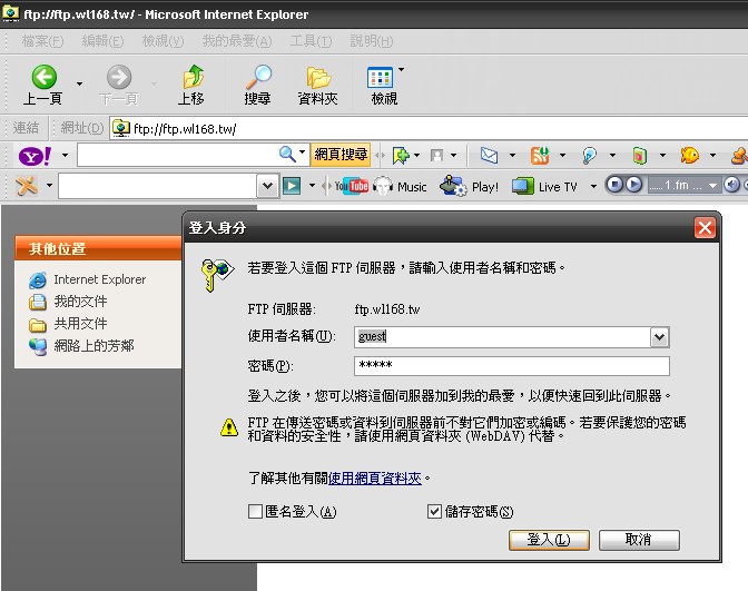 1.於網址列輸入ftp://ftp.wl168.tw 並前往